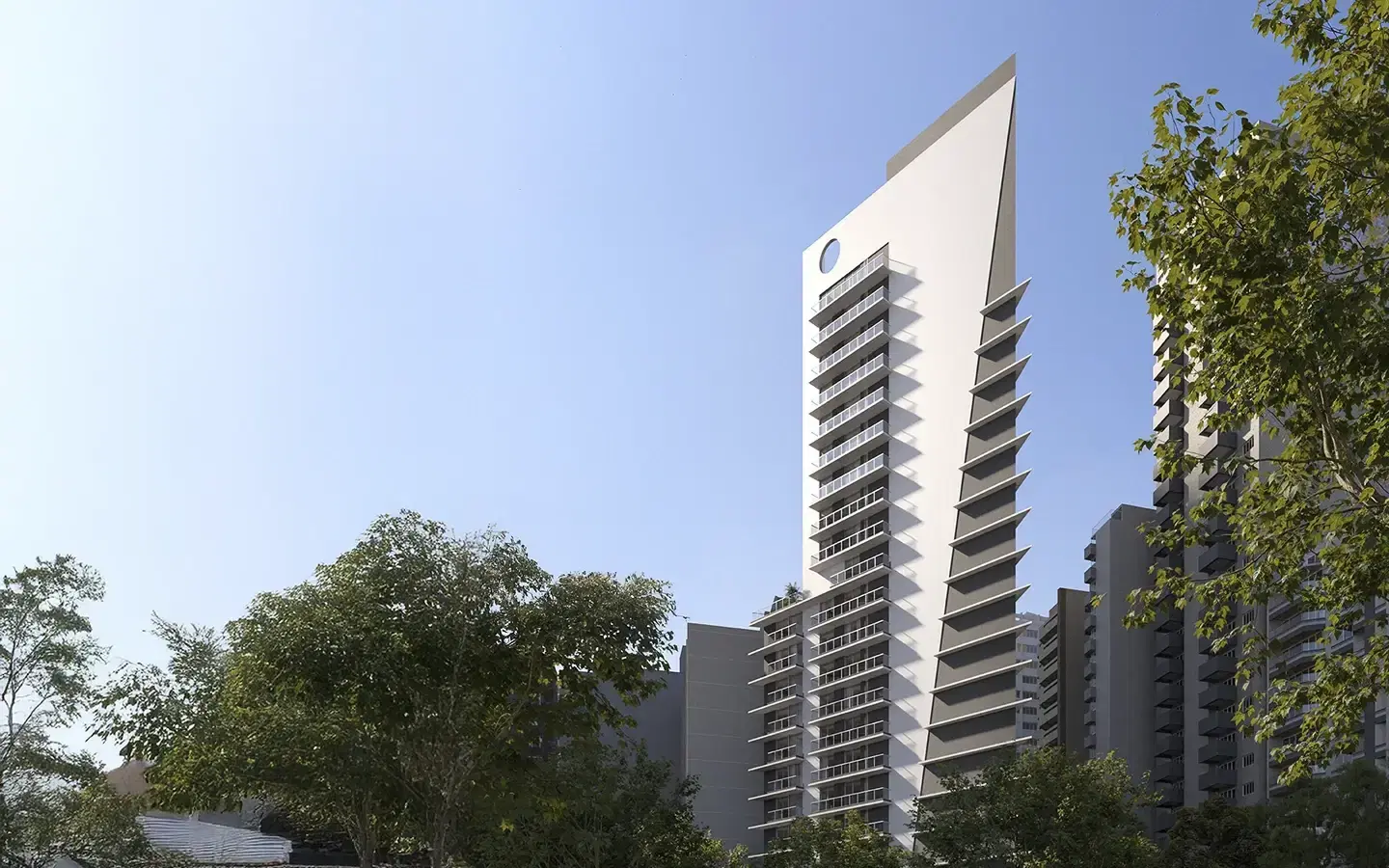 Nas unidades de 22 a 35 m², o design inteligente otimiza cada metro, enquanto as varandas privativas e as vistas para o verde ampliam a sensação de espaço e liberdade.